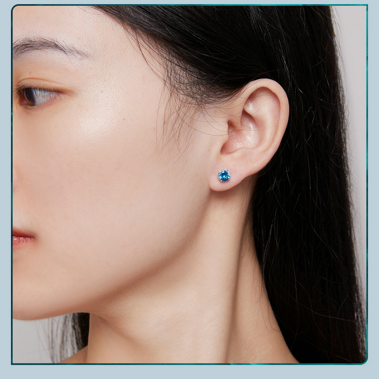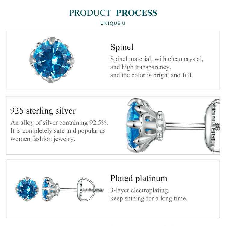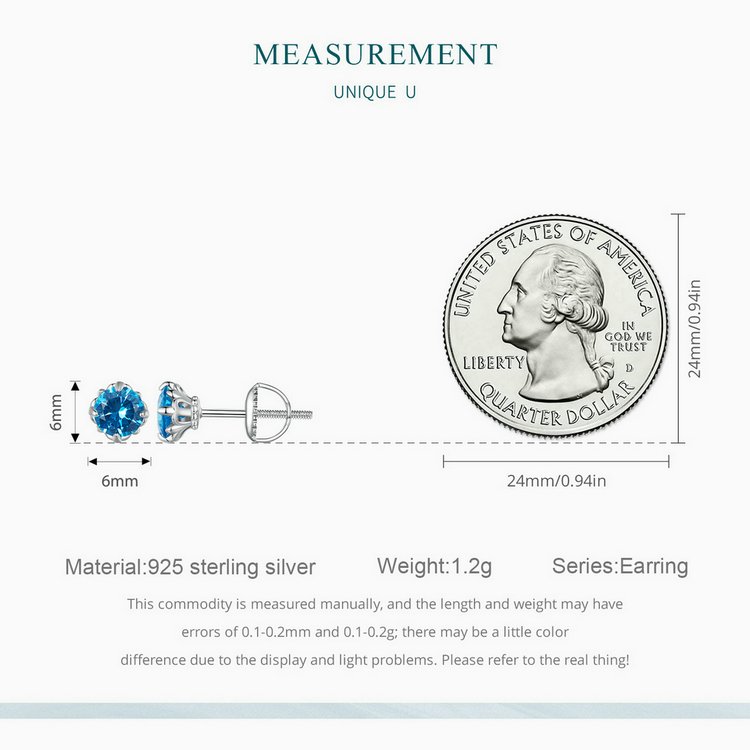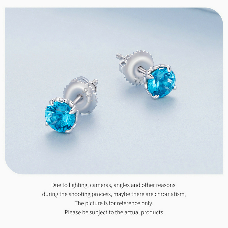 Sterling 925 Silver Blue Tip Crystal Earring - Charm Earrings - Birthday Gift - Bridesmaid Jewelry - Gift For Her