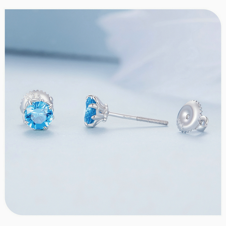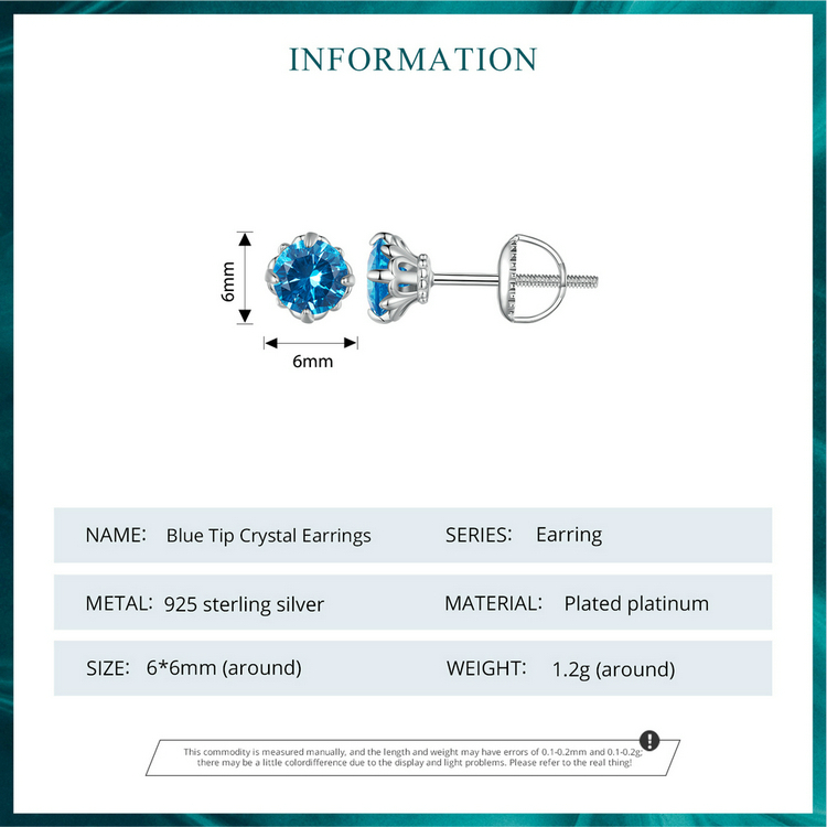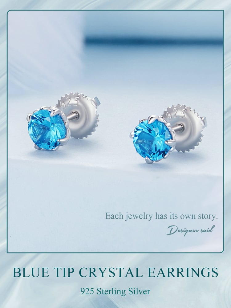 Sterling 925 Silver Blue Tip Crystal Earring - Charm Earrings - Birthday Gift - Bridesmaid Jewelry - Gift For Her